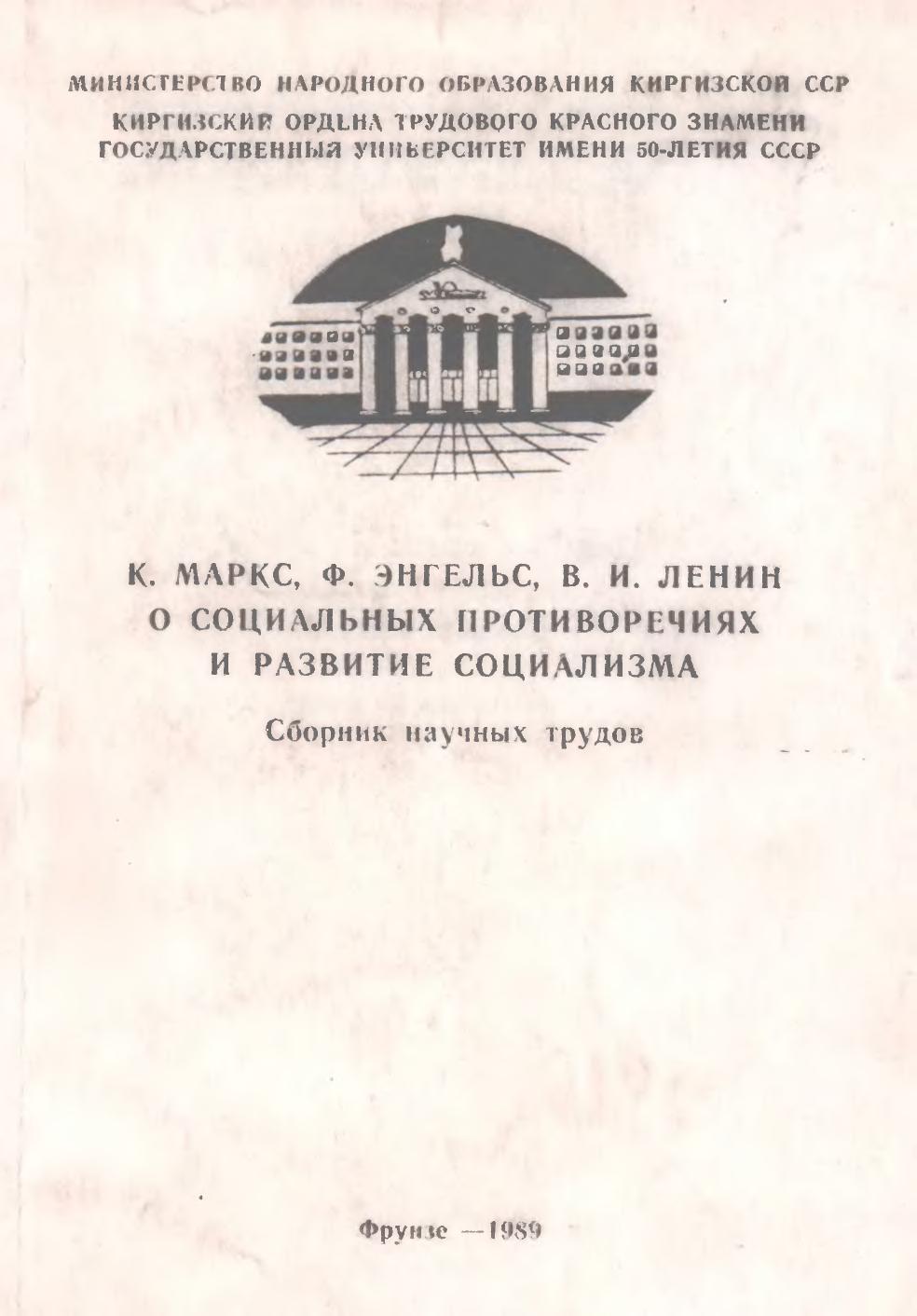 К. Маркс, Ф. Энгельс, В. И. Ленин о социальных противоречиях и развитие социализма: Сборник научных трудов. Кирг. гос. ун-т. Фрунзе, 1989. 124 с.